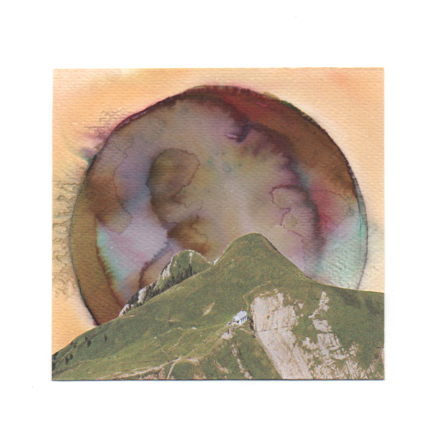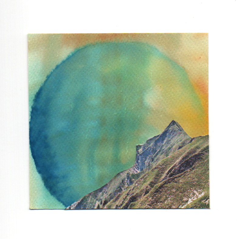 Collage on paper, watercolours. 10×10 cm